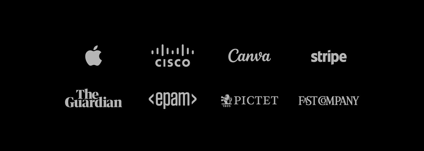 Over the years I’ve had the opportunity to work with clients such as Apple, Cisco, Stripe, Fast Company, The Guardian and Canva.