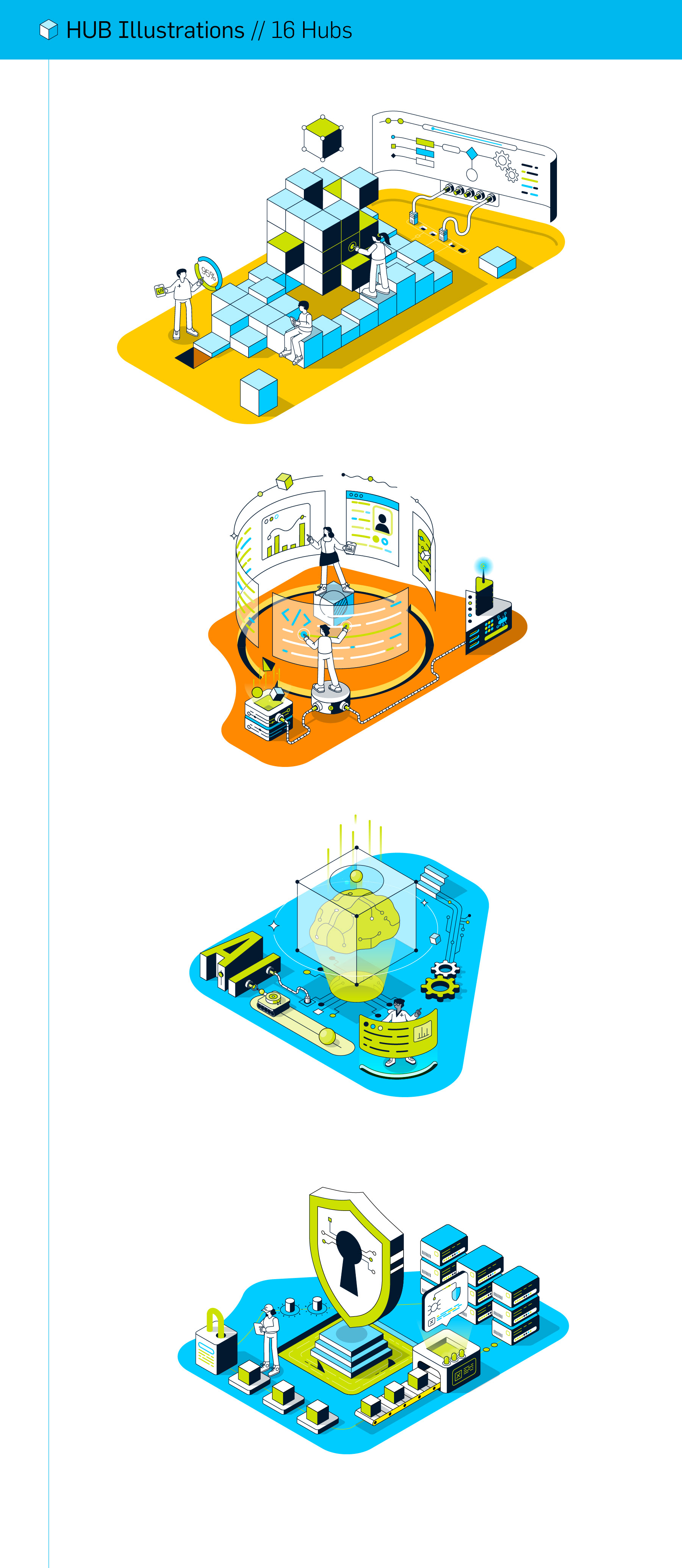 The map includes 16 distinct hubs, each supported by a unique visual concept aligned with its content and purpose.