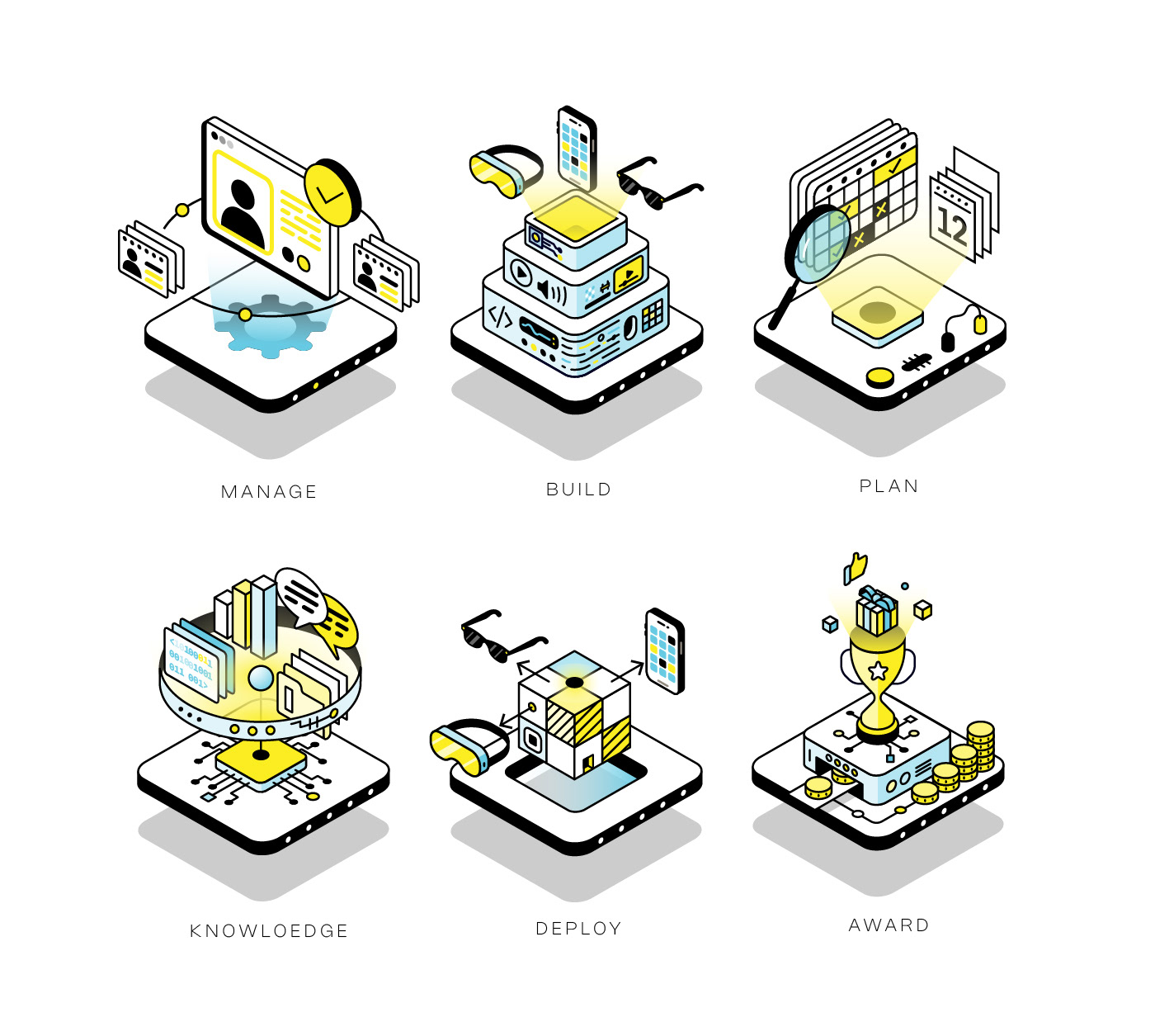 I designed a series of isometric icons and illustrations to present Skillmaker.ai’s core features. The visuals simplify complex AI-driven tools into clear and approachable scenes.