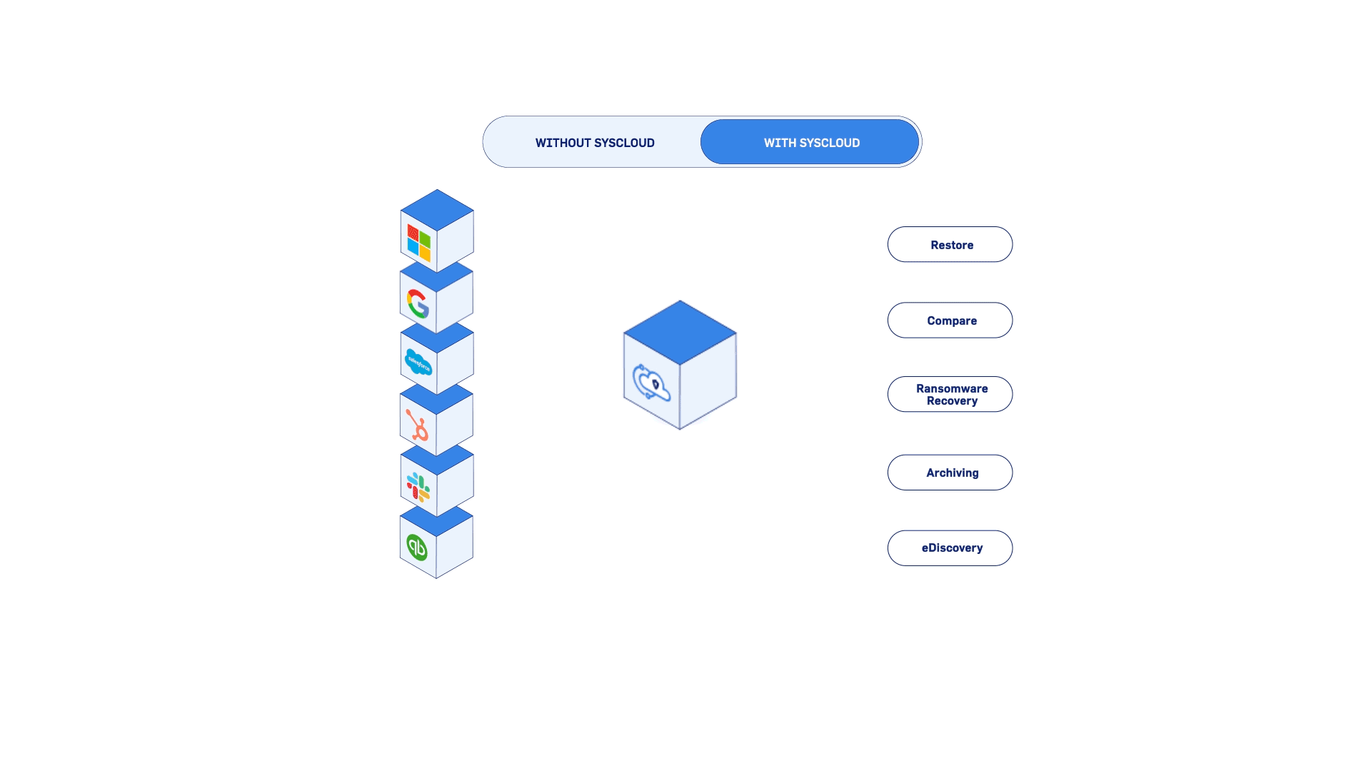 I created six isometric illustrations for Syscloud to explain SaaS protection, ransomware detection and backup management. The visuals were also delivered as lightweight looping SVG animations for seamless use on web and mobile platforms.